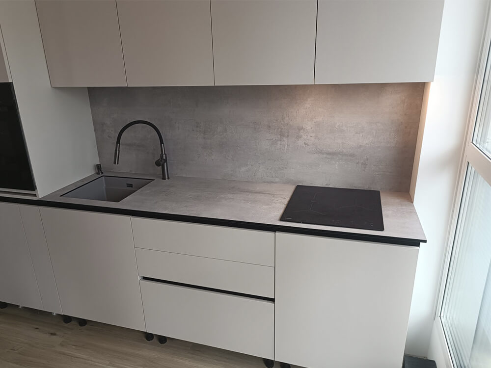Столешницы из компакт-ламината легко очищаются, имеют высокую ударопрочность и влагостойкость, подходят для всех типов кухонь.