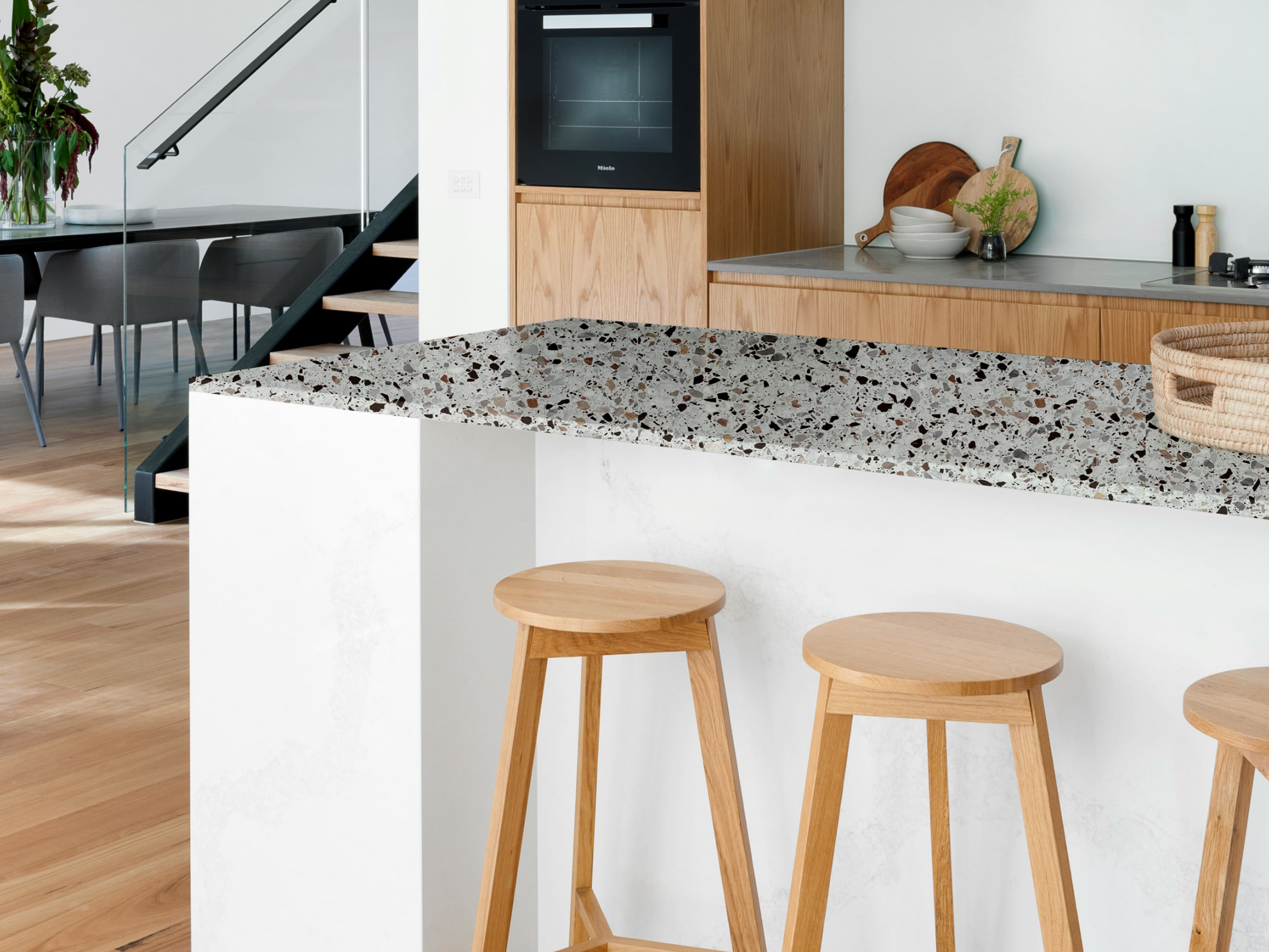 В составе столешниц содержится меламин, который повышает износостойкость и защиту материала от царапин. Благодаря этому они также устойчивы к воздействию химических веществ и высоких температур.