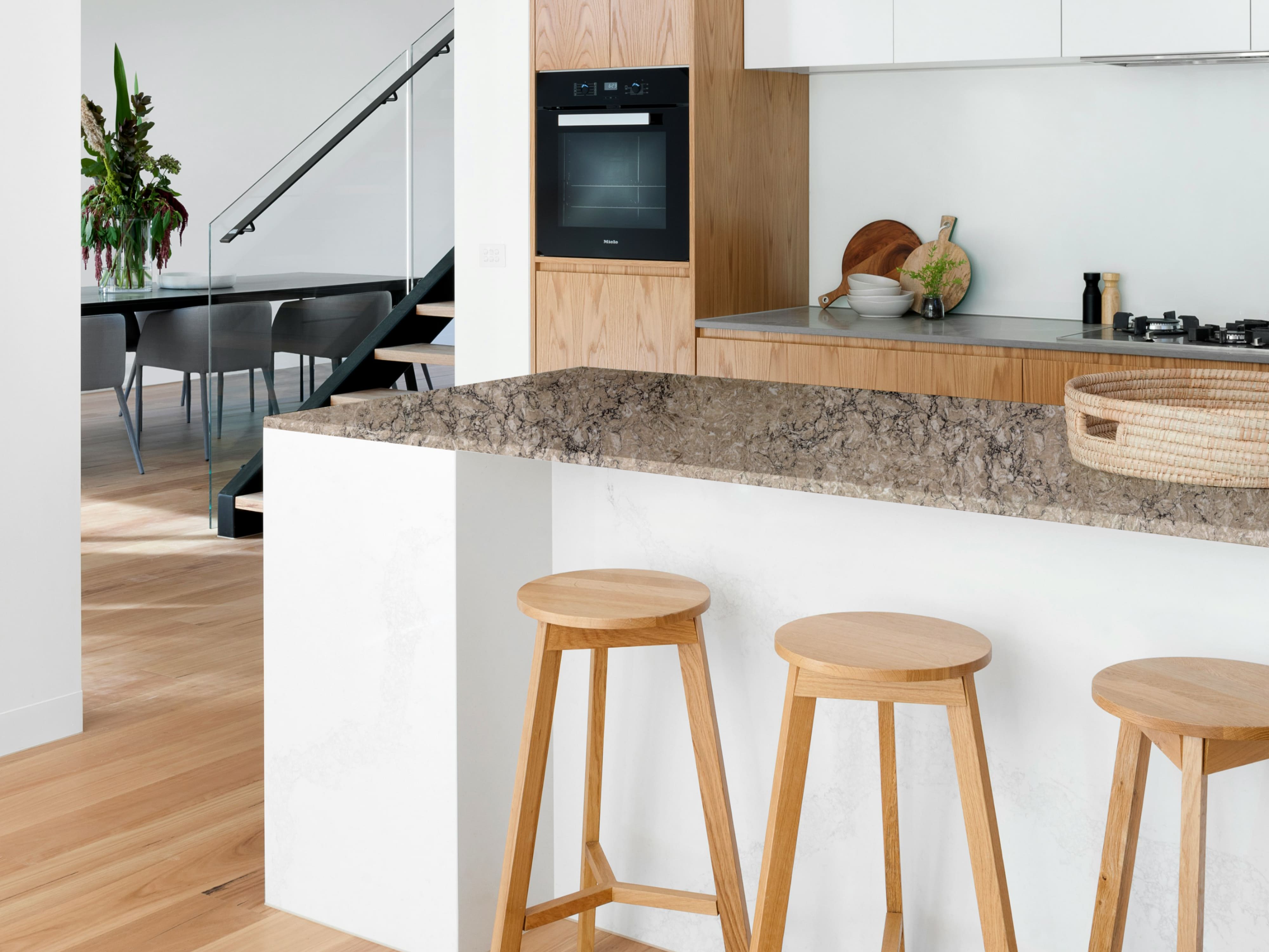 Кварцевый агломерат Silestone Kimbler Mist отличается повышенной прочностью и антибактериальными свойствами. Silestone единственные на рынке добавляют в состав материала ионы серебра, благодаря чему их кварцевый камень особо гигиеничный. Это мировой бренд, который постоянно расширяет ассортимент расцветок и улучшает технологии производства.