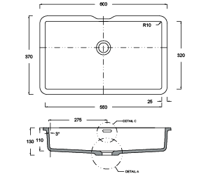 Размеры мойки, мм